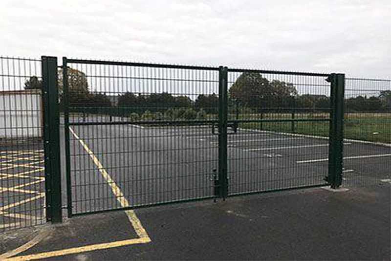 Ce modèle utilise un panneau de clôture rigide pour un haut niveau de sécurité et une intégration esthétique avec les clôtures environnantes.