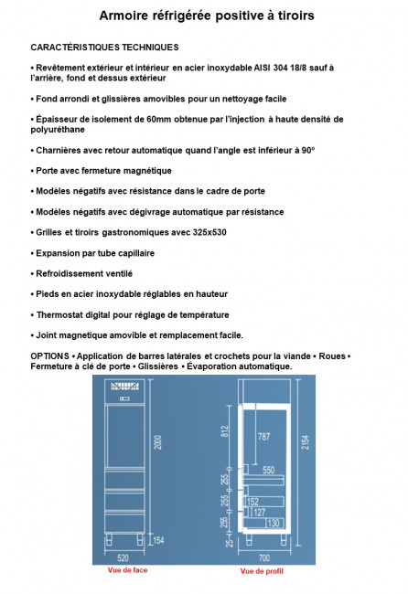 • Revêtement extérieur et intérieur en acier inoxydable AISI 304 18/8 sauf à l’arrière, fond et dessus extérieur