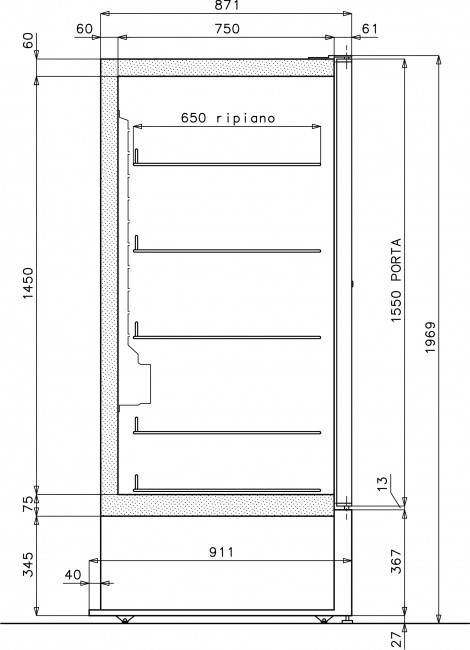 - Dimensions : L.670 x P.871 x H.1969 mm