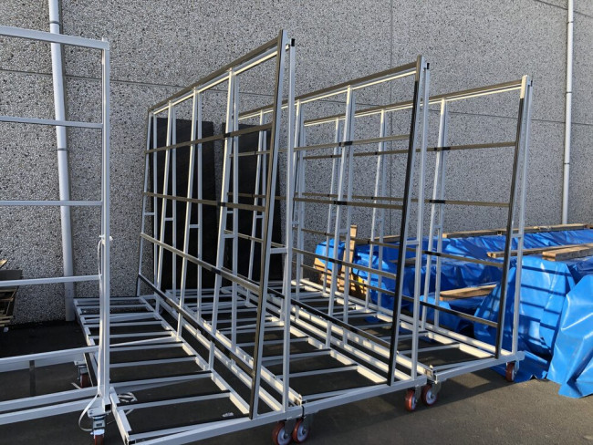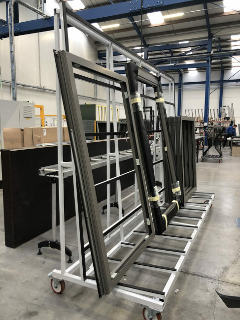 Chariot de triage pour le stockage et le déplacement des fenêtres finies dans l'atelier ou avec le transport LKW.