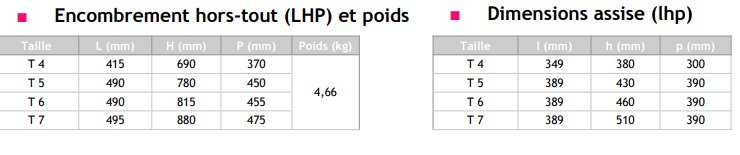 415 x 690 x 370 mm 490 x 780 x 450 mm 490 x 815 x 455 mm 495 x 880 x 475 mm