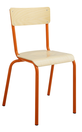 Notre chaise scolaire en bois RAJA s'adapte à l'ambiance de vos classes grâce à sa palette de coloris pour la structure métallique.
