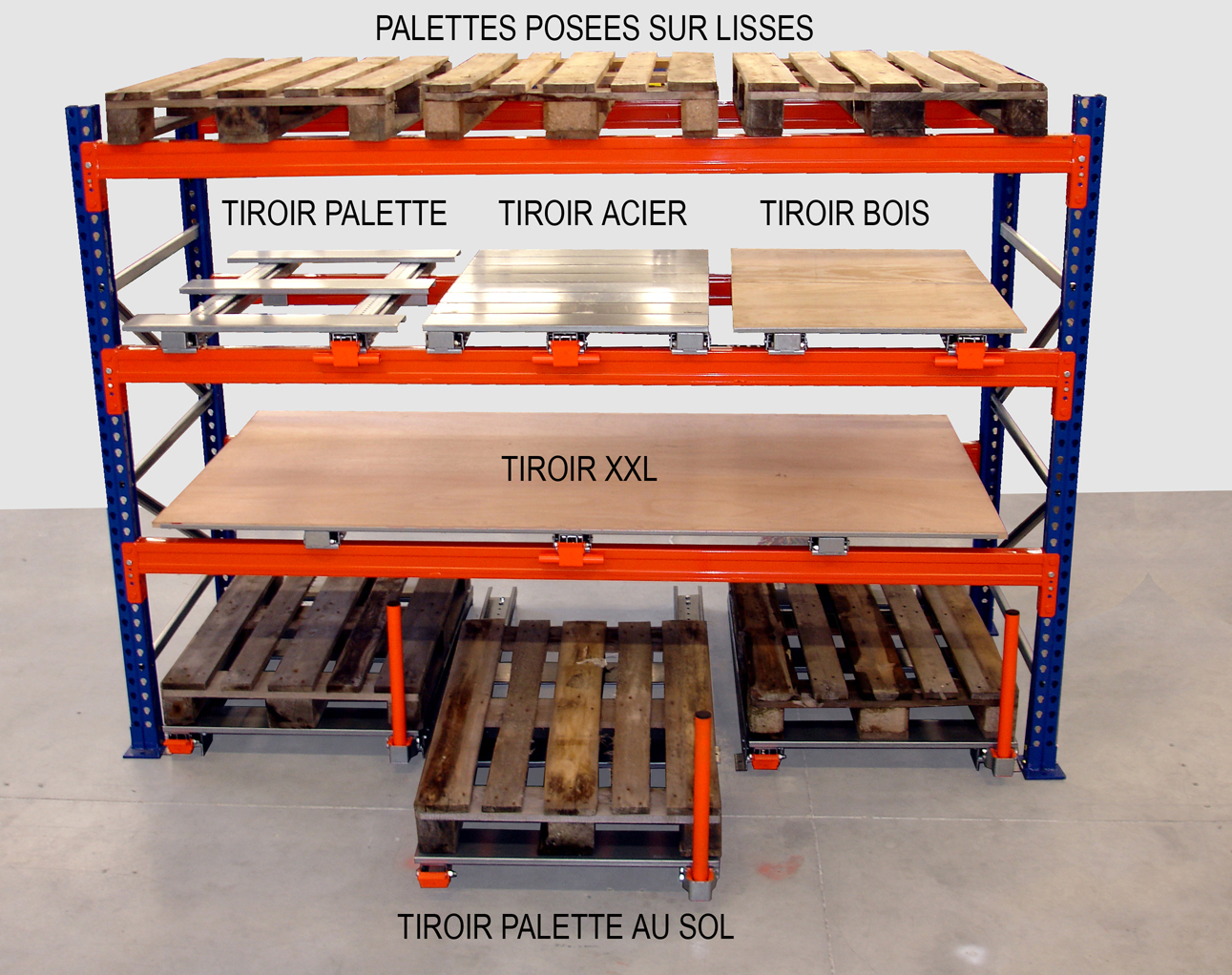 - Un tiroir palette au sol (800 mm hauteur)