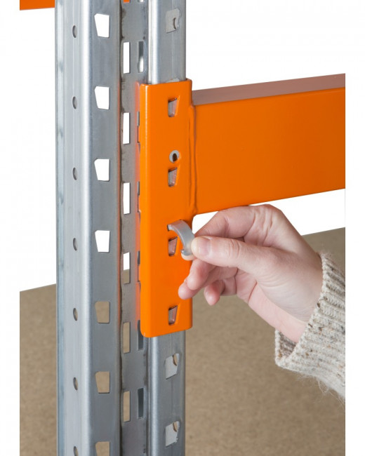 Les montants T175 de section 80x70x1,75 mm, perforés tous les 50 mm, offrent une solidité exceptionnelle et une modularité dans la disposition des niveaux.