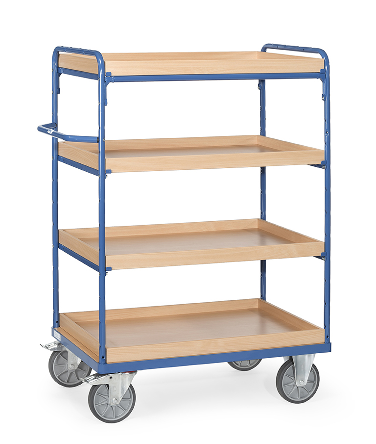Notre chariot haut à rebords est un mobilier d’atelier robuste et pratique, équipé de 4 plateaux à caissettes pour un déplacement aisé et en toute sécurité de vos produits.