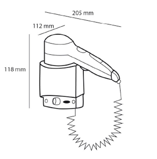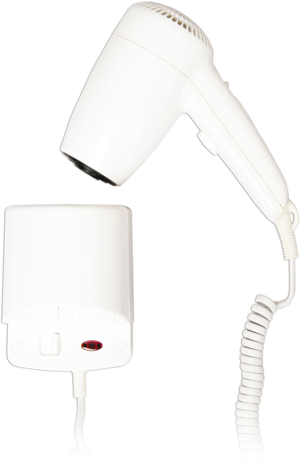Ce sèche-cheveux professionnel est conçu pour s’intégrer dans une salle de bain de chambre d’hôtel ou dans un vestiaire.