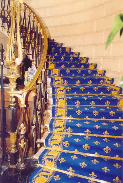 Tissage Wilton - Velours coupé - 100% Laine - Largeurs 0,69m et 0,91m Largeurs sur demande : 0,66 m / 0,80 m / 1,00 m / 1,20 m Notre moquette pour tapis d'escaliers Fleur de Lys est aussi réalisable dans d'autres coloris et dans des largeurs différentes dans le cadre de la fabrication sur mesure de moquettes tissées pour des commandes spéciales. Idéale pour une utilisation en passage ou/et en tapis d'escalier la collection Fleur de Lys peut aussi bien s'intégrer dans des intérieurs modernes que dans des décors plus classiques et des tapis faits main en hand tuft coordonnés avec les mêmes dessins à motifs Fleur de Lys peuvent aussi être fabriqués sur mesure.