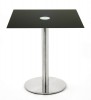 Elle est fabriquée en verre noir avec un pied central en inox brossé qui vous facilitera la mise en place des chaises.