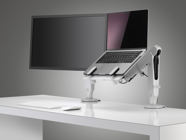 Unique, sensible et conçu par des experts, Ollin est un bras d’écran dynamique qui encourage les utilisateurs à entrer en interaction avec la technologie de la manière la plus fluide possible. LEGER : Plus la technologie progresse, plus les écrans deviennent légers et souvent compacts. Les propriétés du cordon technique qui contrôle le bras Ollin lui permettent d’accueillir des poids de 0 à 9 kg. Et comme la tendance d’allègement des écrans, ou de la combinaison des tablettes/ordinateurs portables se poursuit, Ollin pourra accompagner votre entreprise dans cette évolution. DEUX C’EST MIEUX : Le travail sur double écran se généralise dans les bureaux. Comme Ollin est facile à personnaliser et a adapter, il accompagne cette évolution des nouvelles habitudes de travail. Une fi xation pour double écran peut être montée sur le bras principal pour améliorer la productivité des utilisateurs en leur permettant de passer facilement d’une application à l’autre. Et comme il est inutile de fournir un bras séparé pour chaque écran, les dépenses sont minimisées alors que la productivité augmente. Une solution économique et évolutive face aux modifications de la configuration du poste de travail.