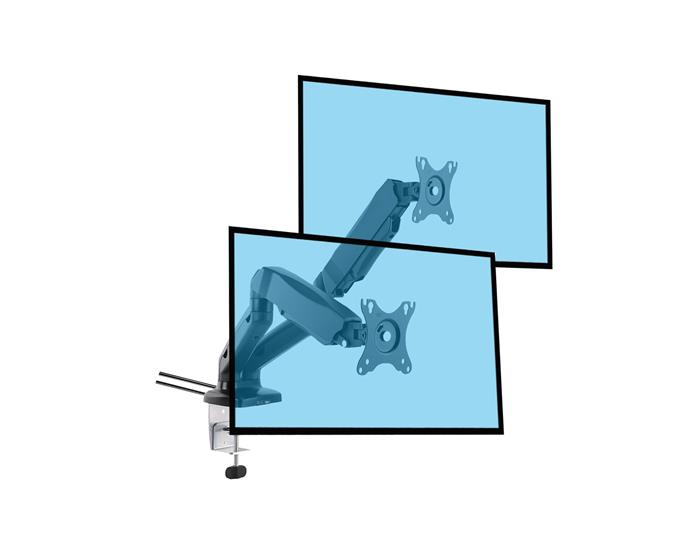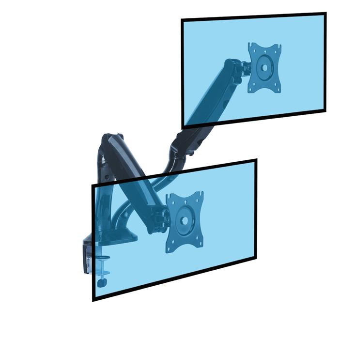 Le support est conçu pour accueillir, selon le modèle, 1 ou 2 écrans de 13" à 27"répondant au standard VESA (75x75 ou 100x100) jusqu'à 9 kg (par écran).