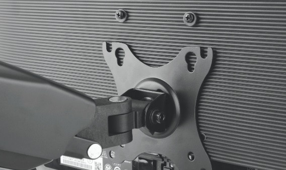 Grâce au ressort à gaz intégré, le bras du moniteur est facilement ajustable en hauteur.