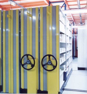 Rayonnage métallique Profiltol sur mobile mécanique pour préfecture