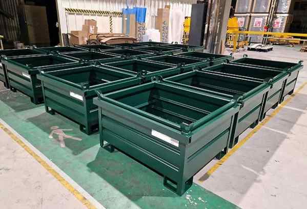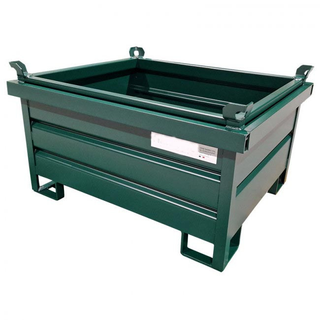 La caisse métallique est conçue pour le stockage et la manutention de divers types de produits, y compris les charges lourdes.