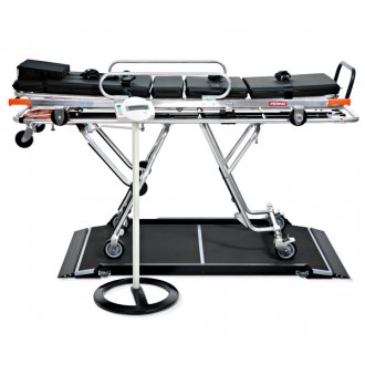 - Plateforme particulièrement spacieuse convenant pour tous les systèmes de chariots brancards et porte-civières courants.