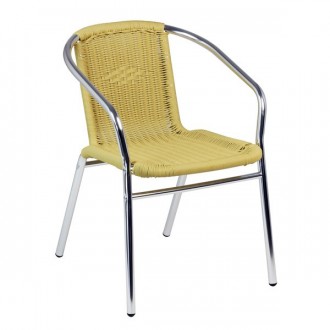 Il dispose d’une structure en aluminium avec un dossier et assise en tressage pvc rond armé d'un fil d'acier.