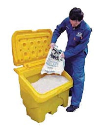 - Bac de rangement multi-usages pour le stockage en intérieur ou en extérieur du sel de déneigement, du sable, de l'absorbant, des E.P.I, des kits antipollution ou divers outillages.
