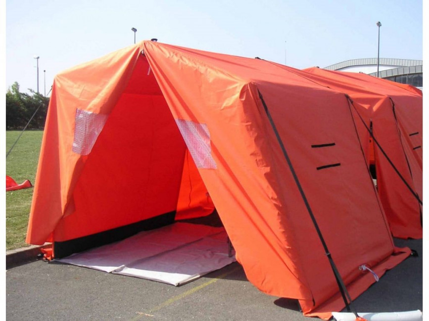 Cette tente d'intervention gonflable est utilisée par le personnel médical en cas d'opération sensible ou catastrophe sanitaire.