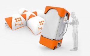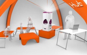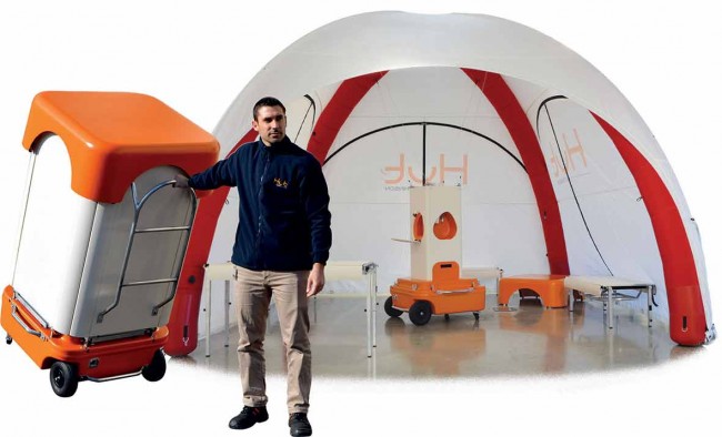 Il est équipé d'éclairage, de mobilier (bancs et tables), d'une tente gonflable de 25m2 (batterie et gonfleur intégré), d'un point d'eau et une zone de recharge pour les PC et téléphones portables.
