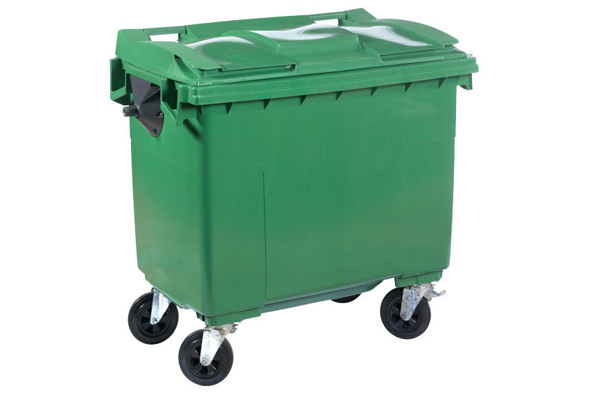 Le conteneur poubelle, possède 4 roues pivotantes dont 2 avec frein.