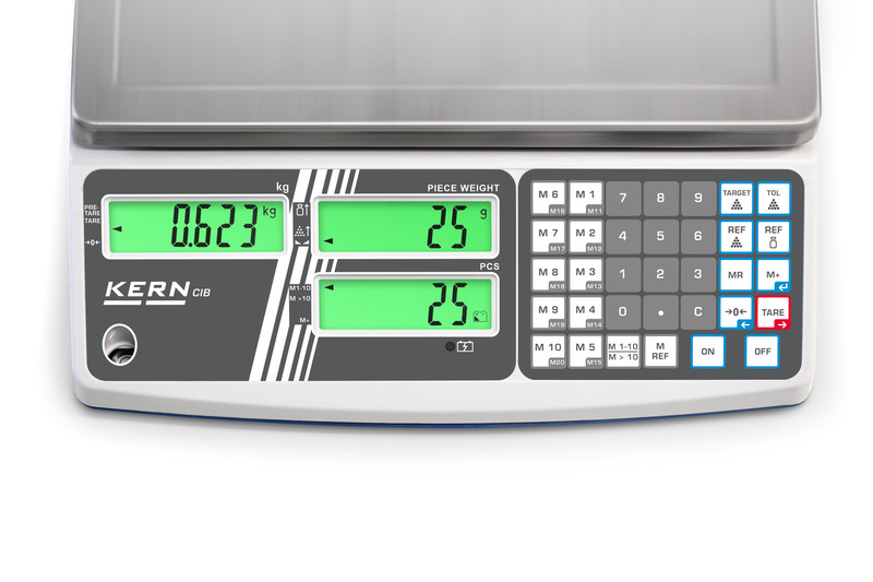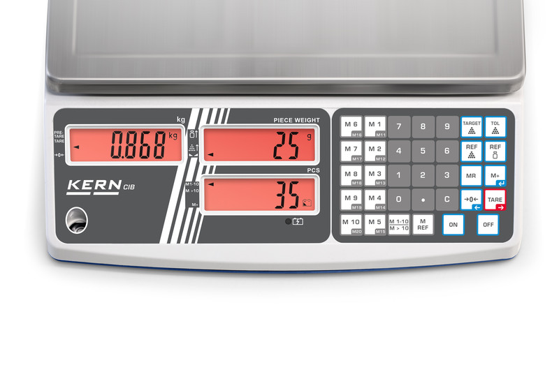 - Trois écrans pour affichage de poids, poids de référence, total de pièces