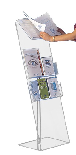D’une hauteur de 130cm, ce présentoir d'accueil dispose de 2 réceptacles pour placer différents formats de brochures.