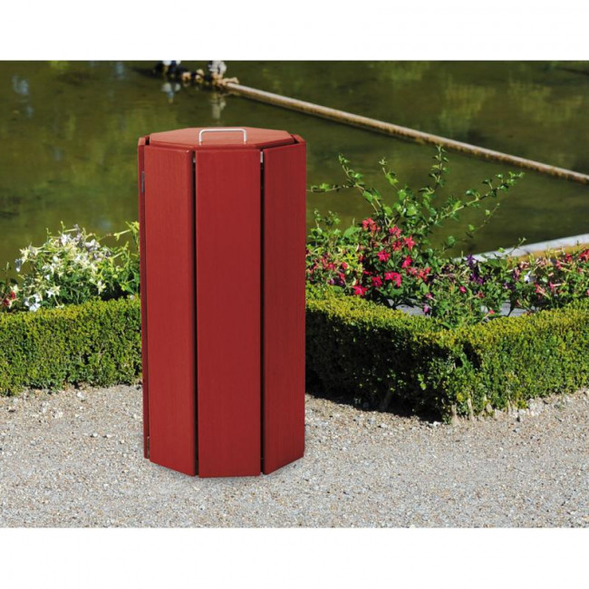 Cette corbeille de ville bois exotique est idéale pour les vastes espaces verts.