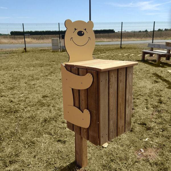 Cette corbeille avec pancarte ours est parfaite pour améliorer le décor d'une école ou parc pour enfant.
