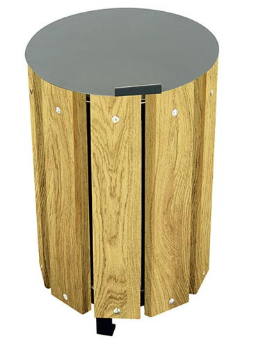 Fiche technique - Corbeille de ville en bois - capacité 48 L - sur pied