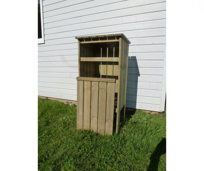 - Revêtement extérieur en lames 95 x 28 mm, couvercle bois fixe