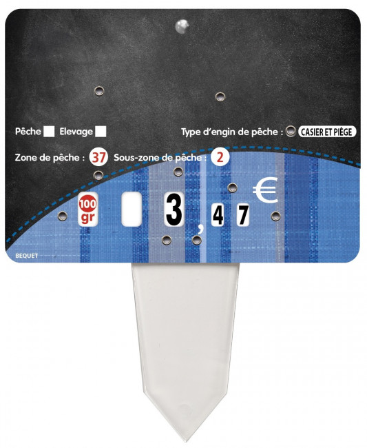 L'étiquette dispose de 4 roulettes de prix (affichage jusqu'à 99,99€). Ce dispositif facilite le changement rapide de tarif, sans risque d'effacement.