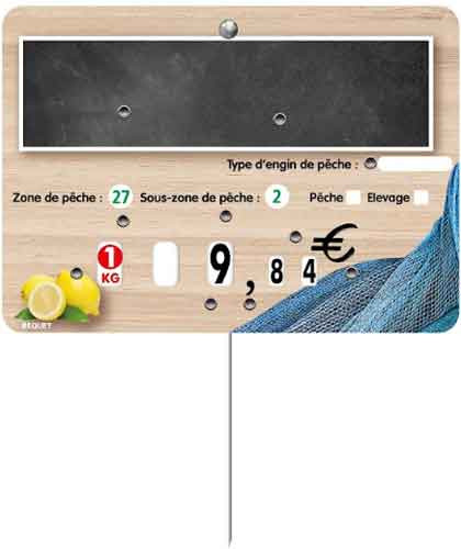 Le format 14×10 cm a été spécialement étudié pour s'adapter parfaitement aux étals poisson professionnels.