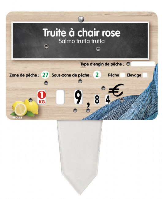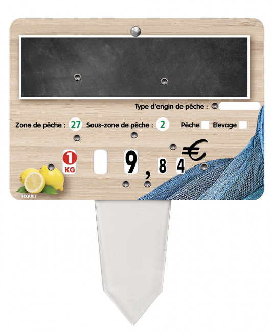 Cette étiquette de prix poissonnerie est conçue pour affichage des prix et les autres informations utiles au client.
