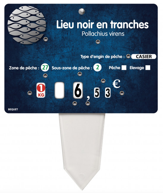 Cette étiquette de prix poissonnerie est conçue pour affichage des prix et les autres informations utiles au client.