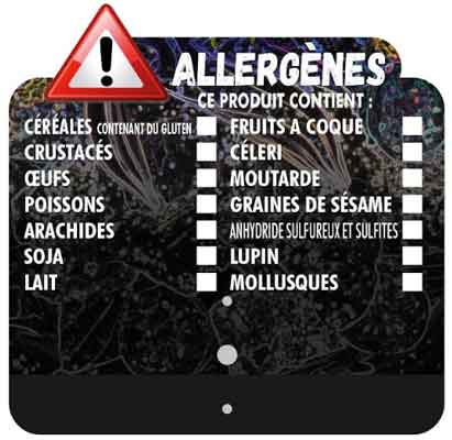 La signalisation réglementaire se fait par 4 disques intégrés à l’étiquette :