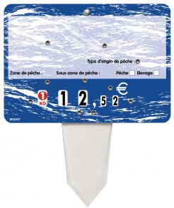 Les 4 disques facilitent l’indication du poids, du type d’engin de pêche, de la zone et de la sous-zone de pêche, pour une transparence totale.
