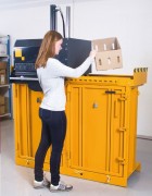 Poste de travail propre : lors du déballage, le matériau d’emballage utilisé est tout de suite placé dans la V-Press 60. Pas besoin de le transporter dans un lieu de stockage intermédiaire.
