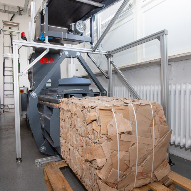 Cette presse à balles à canal 82 kN est conçue pour compacter les cartons et papiers légers.