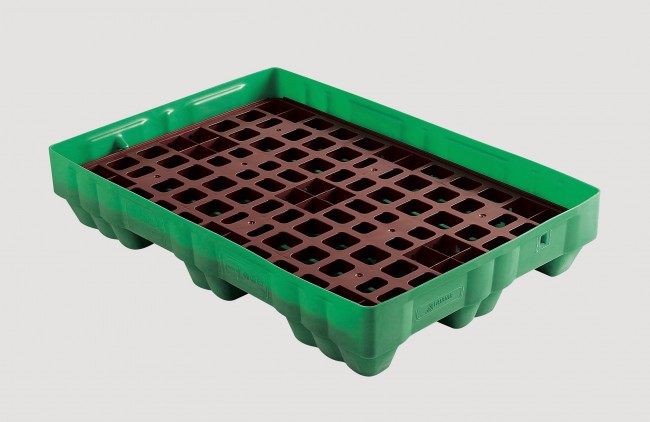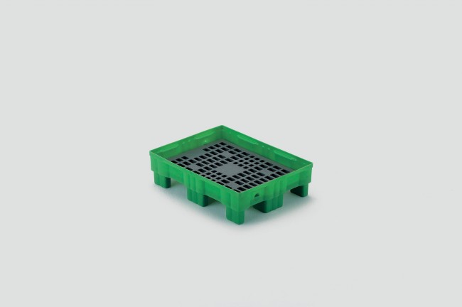 Cette palette de rétention peut être déplacée sur un chariot ou avec un transpalette.