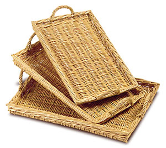 5 à 6 de Plateau à poignées en osier rectangulaires et rondes. Tarifs avec les dimensions.
