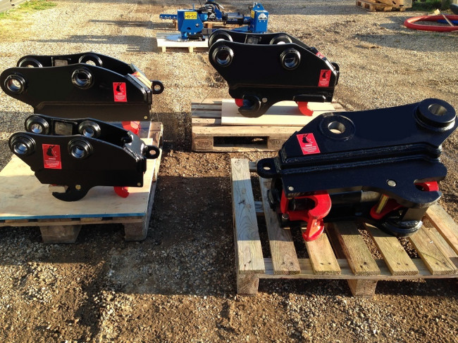 - Convient pour pelle 4 à 60 tonnes - Conforme aux dernières normes Européennes de sécurité EN 474-1+A3 qui prévoient une double-sécurité automatique - 1ère sécurité : crosse avant sur axe godet côté balancier - 2ème sécurité : gros ressort entourant le vérin (protégé dans un fût pour les pelles à partir de 10 tonnes) - Fonctionnement simple du coupleur : très peu de pièces internes en mouvement (1vérin, 1 ressort, 1 fût de protection, 2 crosses, 2 clavettes) - Pièces massives : très longue durée de vie - Reprise godets d’origine, ou sur mesure MixMatch pour reprise de godets d’une autre pelle - Pression permanente sur axes godet (pas de jeu possible dans le temps) - Kit hydraulique complet fournis (jeux de flexibles, raccords, électrovanne, boitier de commande) - Reprise différents entraxes et reprise possible d’axes de diamètres différents