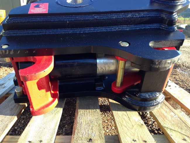 Il s'agit d'un type d'attaches rapides pour pelle d'une structure simple avec peu de pièces internes, étant équipée seulement d'un vérin, un ressort, 2 crosses, 2 clavettes et un fût de protection.