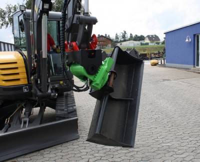 tiltrotator hydraulique pour pelles de 2 à 40 tonnes combine rotation 360° pelle et inclinaison godet hydraulique.
