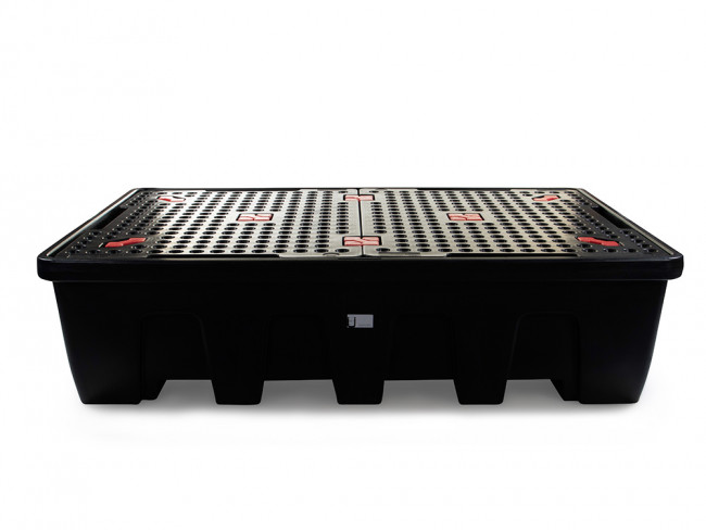 Bac de rétention pour 2 cubitainers adapté pour stocker les liquides polluants (chimiques et corrosifs). Il est muni de 2 caillebotis amovibles renforcés.