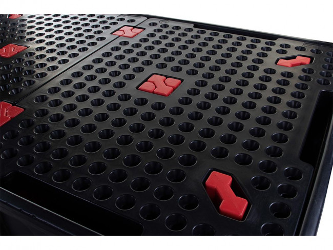 Il permet de récupérer les déversements de liquides dangereux grâce à son plateau caillebotis.