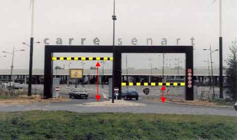 -En arche double, avec l'entrée hauteur à 2.10 mètres : l'accès est interdit aux caravanes et fourgons. A 4.20 mètres, l'accès est autorisé pour tous les types de véhicules.