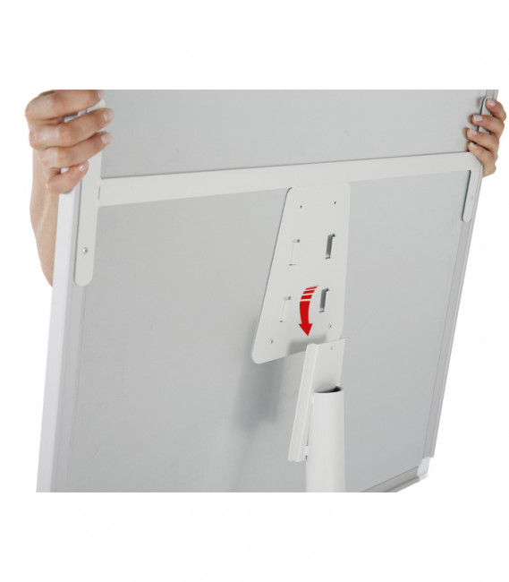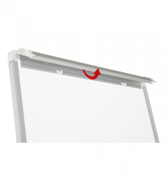 La superficie de ce Flipchart avec roulettes peut être utilisé pour écrire avec marqueur pour tableau ou avec aimants.