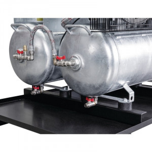 Le compresseur stationnaire universel à 2 cuves est idéal pour les ateliers, les garages et les chantiers.