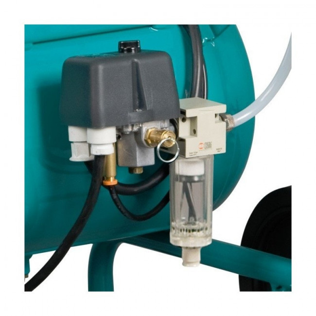 - Une poignée de transport supplémentaire permet de transporter le compresseur confortablement à deux mains