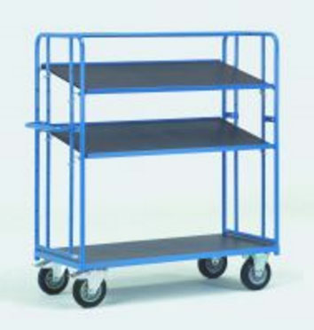 1 chariot roulant à plateaux pour exposition extérieur d"un commerce Dimensions: capacité:50 kg hauteur:80 cm profondeur:80cm longueur : 8m/4