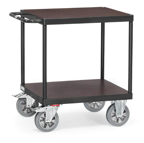Ce chariot à plateaux est spécialement conçu pour transporter des charges lourdes.
